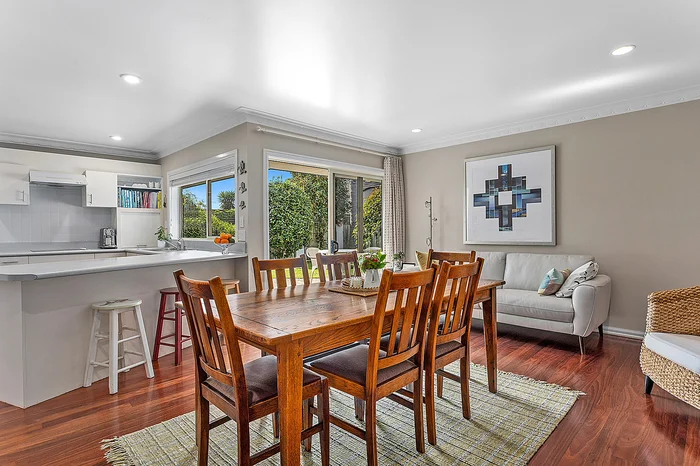 Stunning eucalyptus wooden floors throughout the dining and kitchen spaces add a touch of warmth and sophistication. The kitchen is a chef’s delight, boasting ample cupboard and bench space, allowing for multiple cooks to work in harmony.
