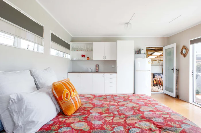 The elevated, fully fenced 473-square-metre rear section on Hoterini Street is home to the cutest accommodation building containing sleeping quarters, wash-up and bathroom facilities.