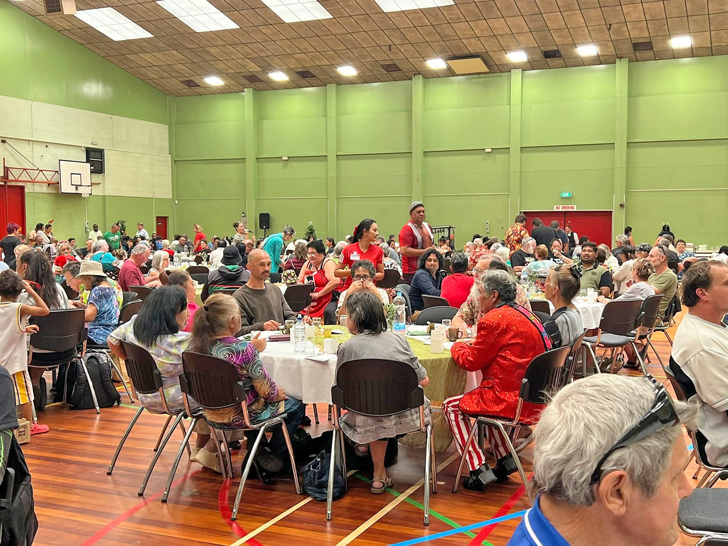 About 60 adults and children gathered for the Manna Kai Christmas Lunch, held at the Ōpōtiki Baptist