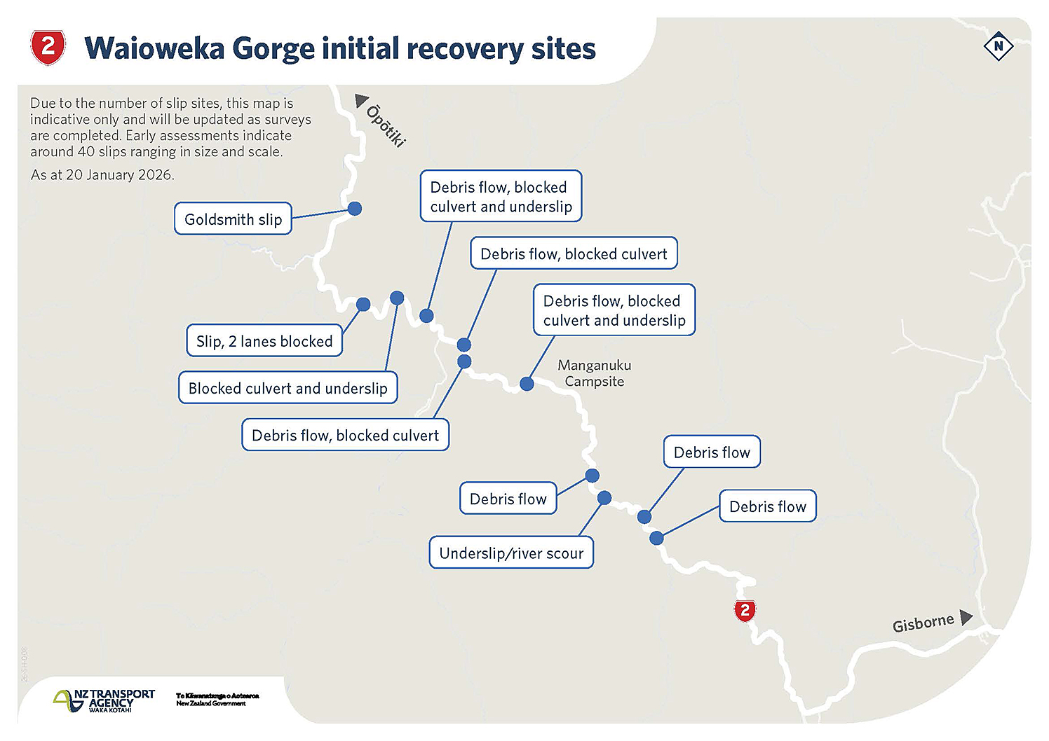 While good progress has been made from both ends of Waioeka Gorge to clear slips, New Zealand Transp