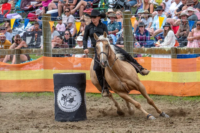 Kaitaia cowgirl Annie O’Callaghan burst onto the scene in the barrel racing, winning her second-division race before placing seventh in the open barrel race just a couple of hours later.