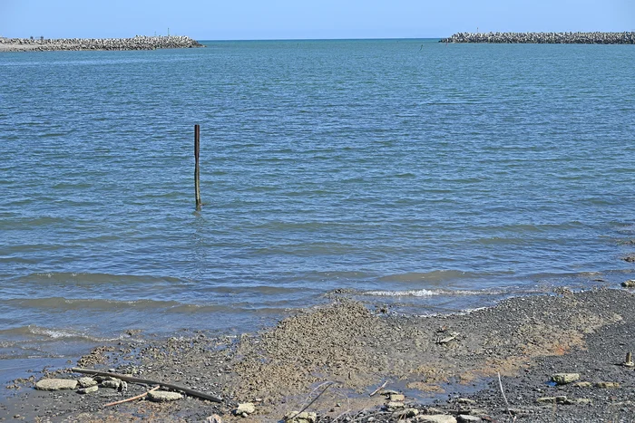 This revealed a wide flat area looking overlooking the Pakihikura River estuary, located at the centre of the two breakwaters constructed to improve the harbour entrance several years ago.
