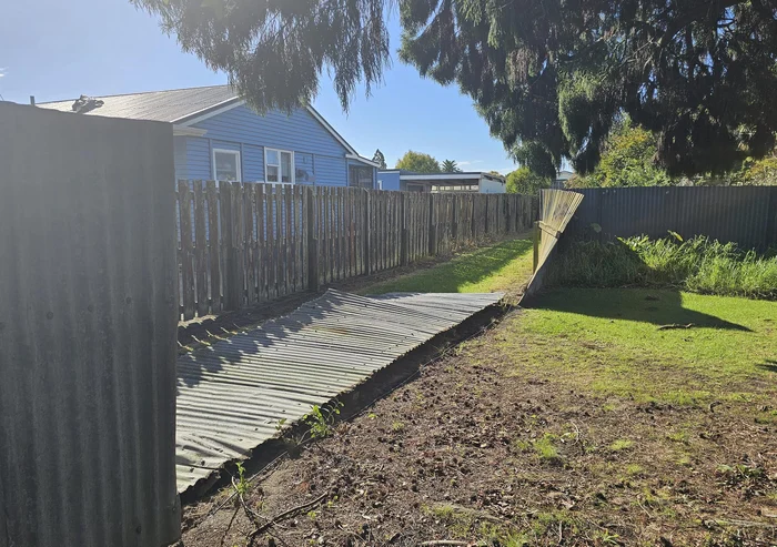 Peace Street resident Mr Gray had his fence blown over, including three sturdy wood posts. Luckily his building skills were up to scratch allowing him to have the three fence posts concreted back in place within hours.
