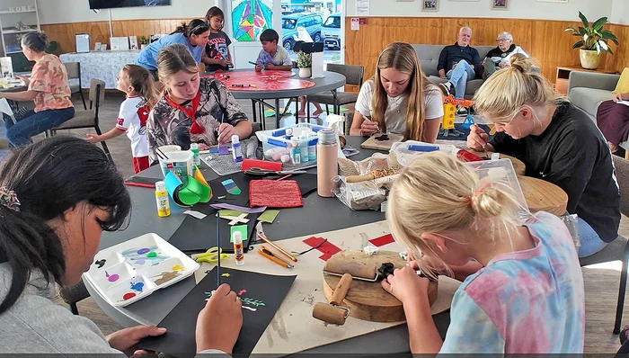 “There were no spare seats around the art table facilitated by artist Jodi Collins as children and adults created art pieces from air dry clay and painted crosses.