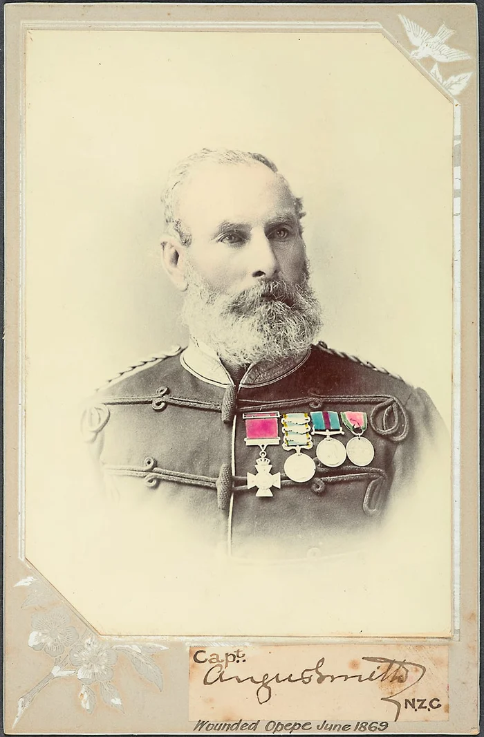 Captain Smith’s medal came for bravery shown during a bloody clash with Te Kooti’s men as a young cavalry officer. He was in command of a unit ambushed on June 7, 1869, at a deserted Māori settlement at Ōpepe, on the shores of Lake Taupō.