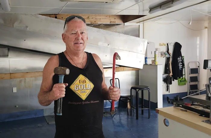 Brian “Gibbo” Gibbons was sad to be removing his fish and chips business, Gibbos on the Wharf from its home at 2 The Strand, beside the wharf yesterday.