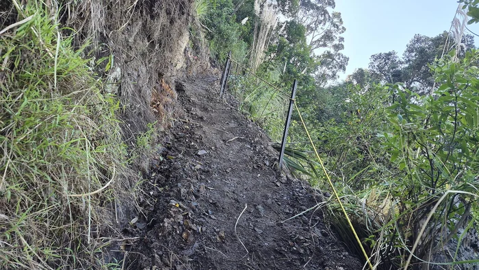 Extensive digging into the hillside was evident, effectively reinstating a track. Mr Palmer reported the track to be easily accessible by walking around the fence. He also found it quite slippery and said it did not feel very safe for the average person.